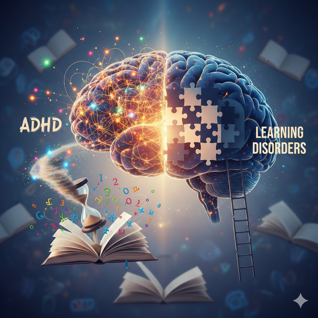 Neurodevelopmental conditions such as ADHD and learning disorders are common and often misunderstood. Children with ADHD may struggle with attention, impulsivity, and organization, while those with learning disorders may have difficulty with reading, writing, or math.