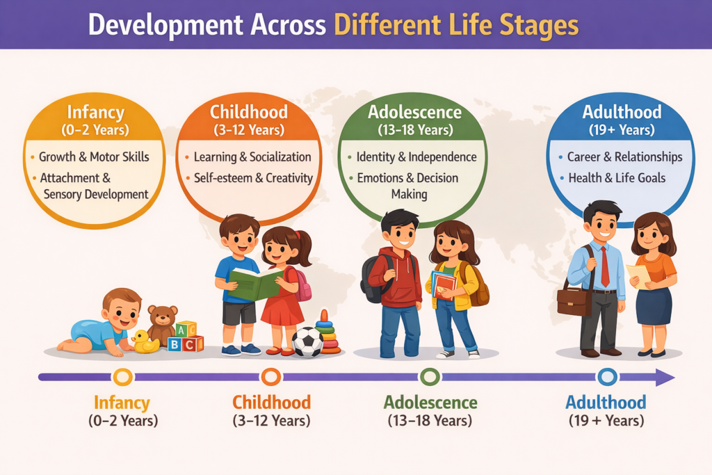 Development begins even before birth. During pregnancy, genetic factors and the prenatal environment play a major role in shaping physical and brain development. Nutrition, stress, and exposure to harmful substances can all influence outcomes. This stage shows how early development truly starts and why prenatal care is so important.